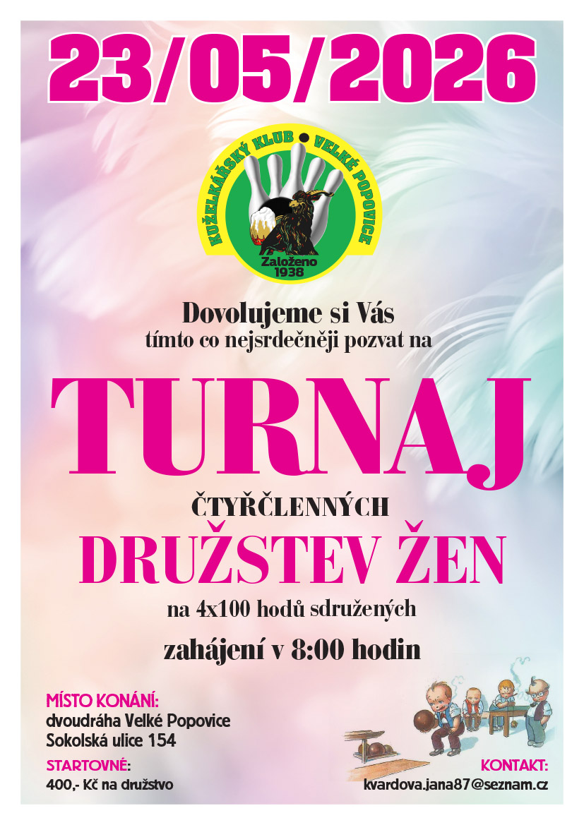 - | - | Pozvánka na turnaj 4 členných družstev žen do Velkých Popovic |
